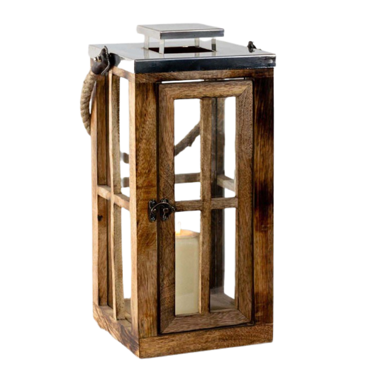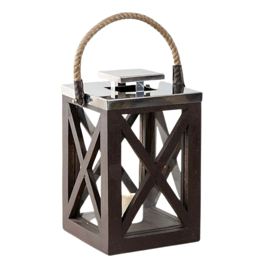 Geometric Wooden Frame Hanging Candle Lantern With Metal Handle Wind Proof Clear Glass Pillar Candle Holder