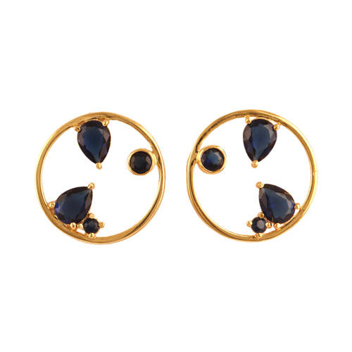 Geometric Design 24K Gold Plated Faceted Blue Iolite Quartz Stud Earring Latest Trend Girls Fashion Accessory for Party