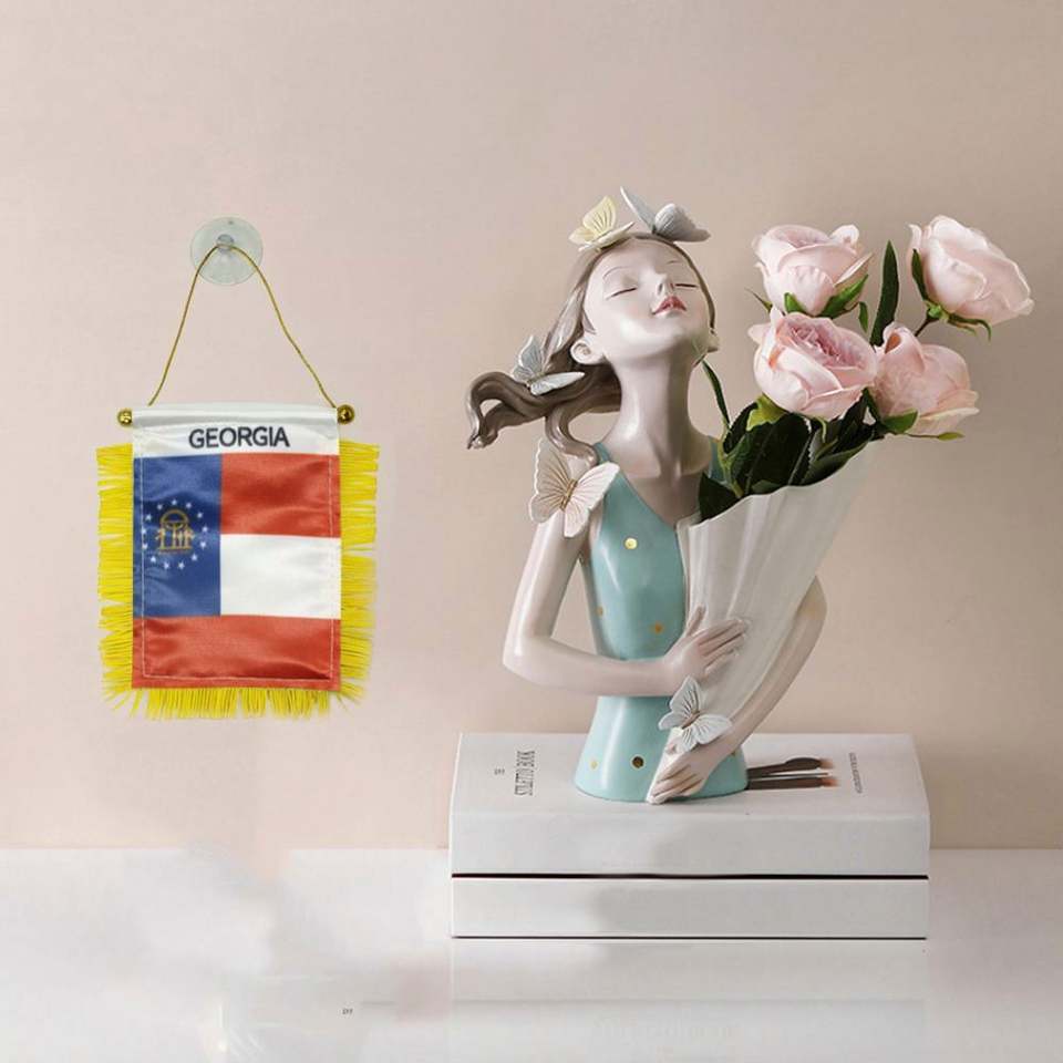 Georgia State Custom Satin Mini Car Flag Banner Digital Printed with Yellow Tassels