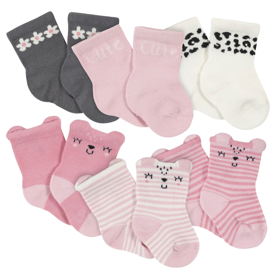 Gerber 6-Pack Baby Girls Wiggle Proof Leopard Crew Socks Jersey Design for Newborns 0-3 Months