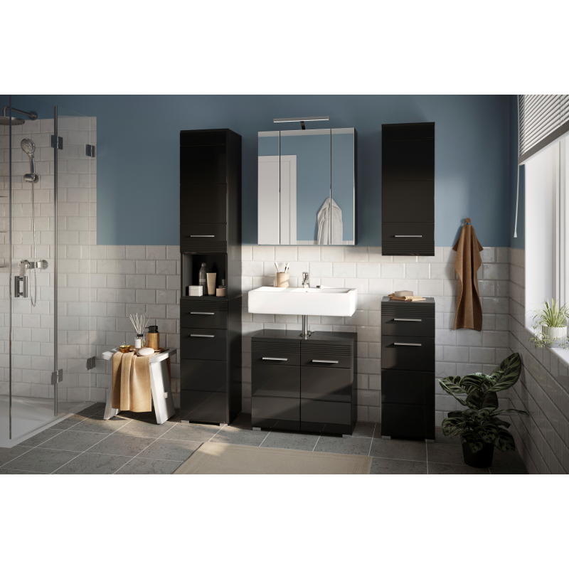 German Design Single Vanity Sink Cabinet Luxury Bathroom Set X18B5701 Furniture Chipboard Silver Handles 30x79x30cm