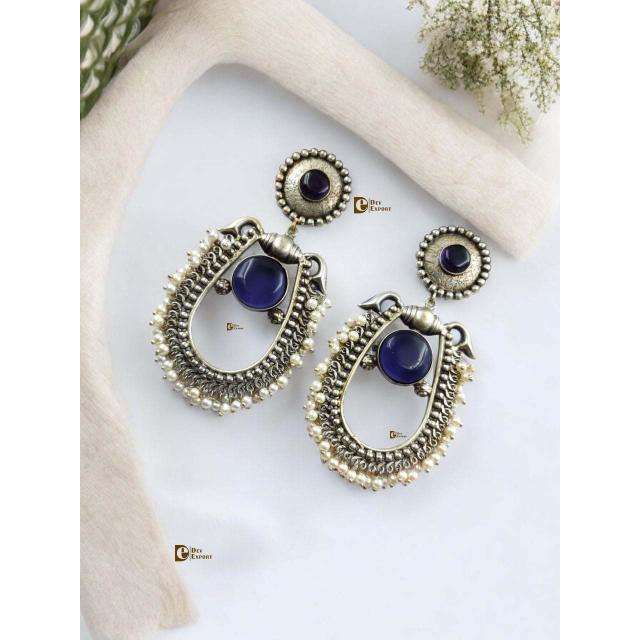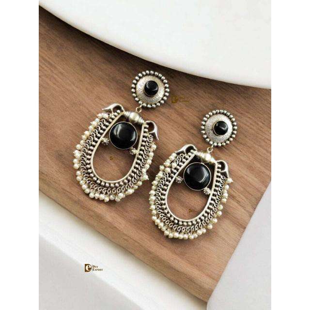 German Silver Black Chand Bali Stone Earrings for Girls for Casual Party Wear for Women Handmade Bulk Product