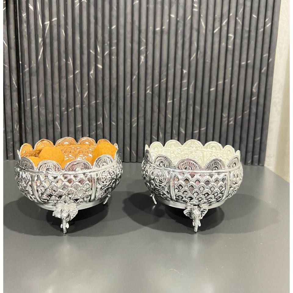 German Silver Handmade Dishwasher Safe Modern Luxury Prasad Offering Bowl for Pooja & Diwali Festival Dry Fruits Salad Bowl