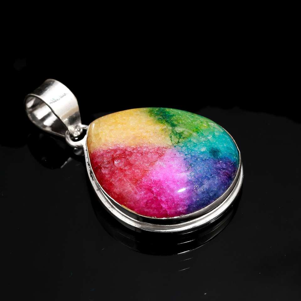German Silver Teardrop Pendant Handmade Rainbow Solar Quartz Heart Shape Cabochon Gemstone Bezel Setting Fine Pendants Charms
