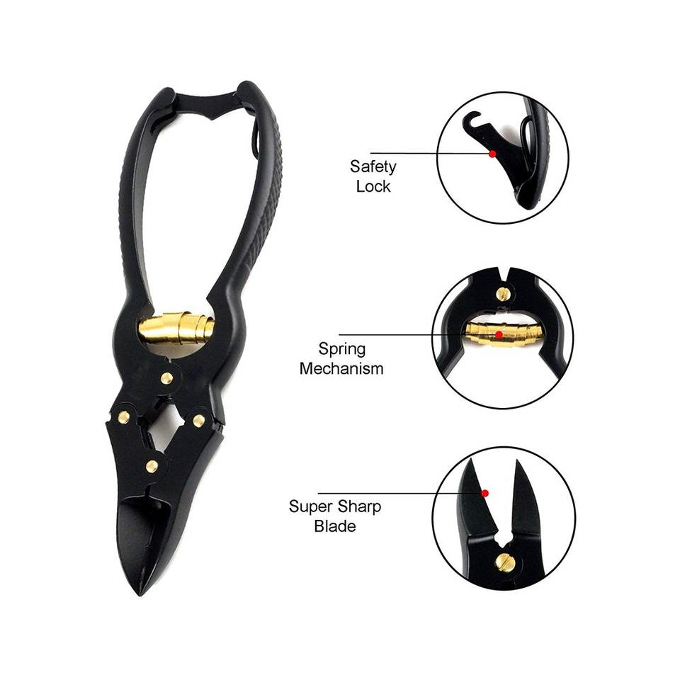 German Stainless Steel Nail Cutter Back Lock Double Action Curved Blade Ingrown Toenails Cutters Black Color Coated Clipper