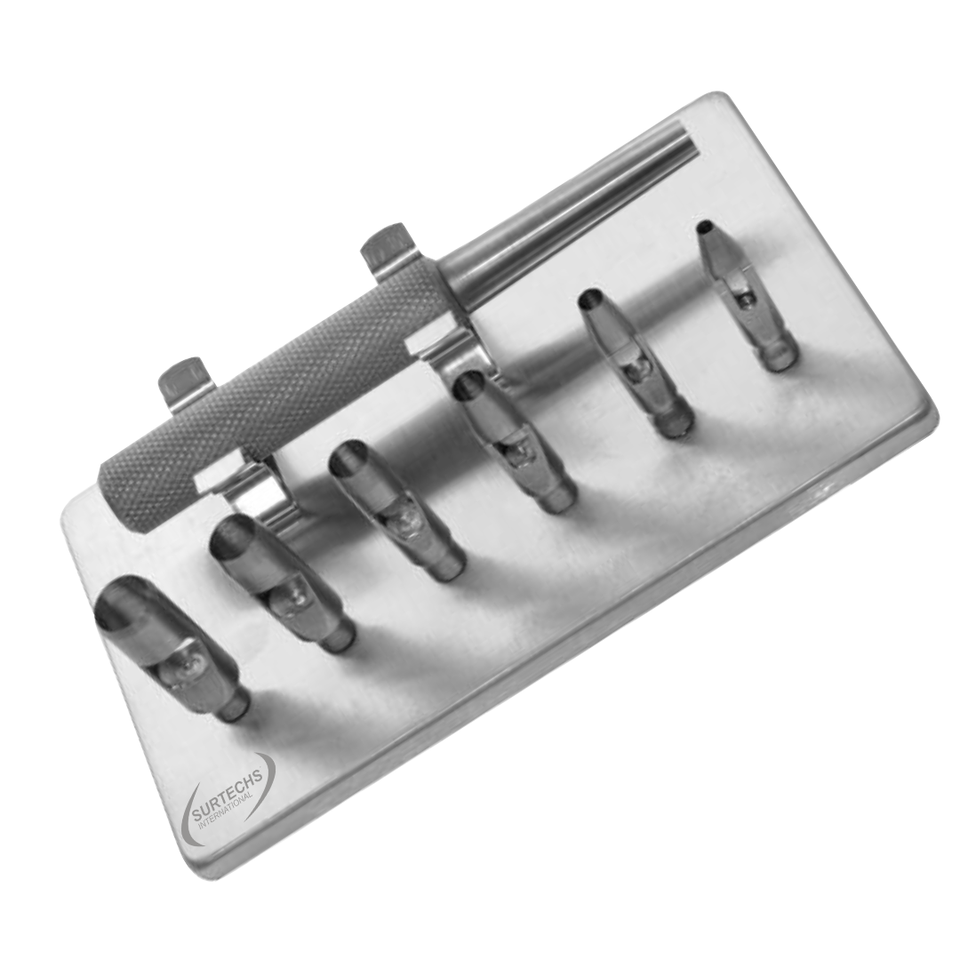 German Stainless Steel Surgical Keyes Punches Set with Handle and 6 Exchangeable Punches Surtechs Instruments