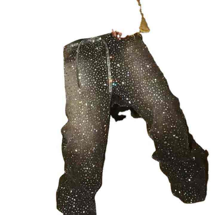 Get The Perfect Party Wear Look With Our Precision Detailed Gemstone Work On This High Quality Rhinestone Denim Pent