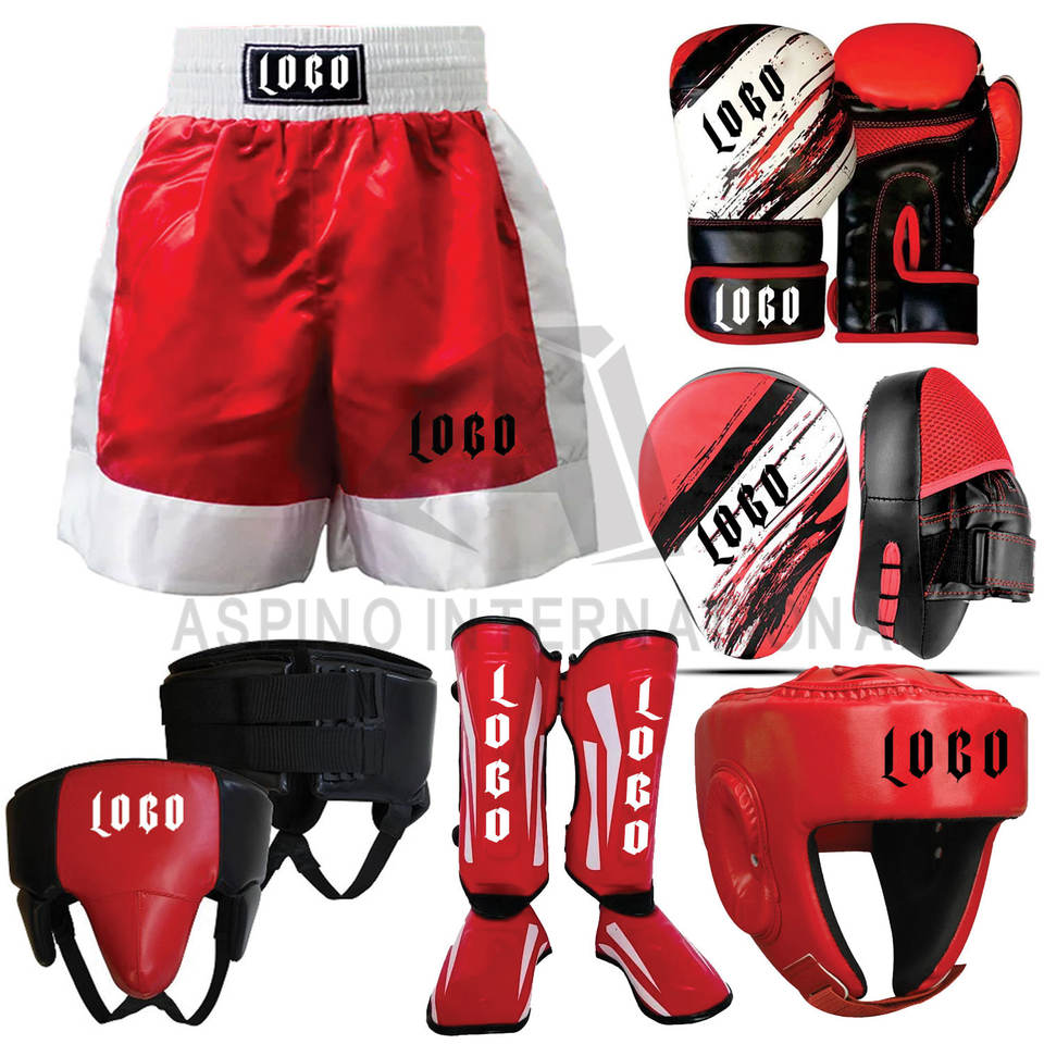 Professional Complete Boxing Gear Set Training Kickboxing Includes Waterproof Leather Gloves Hand Grips Groin Guard Head