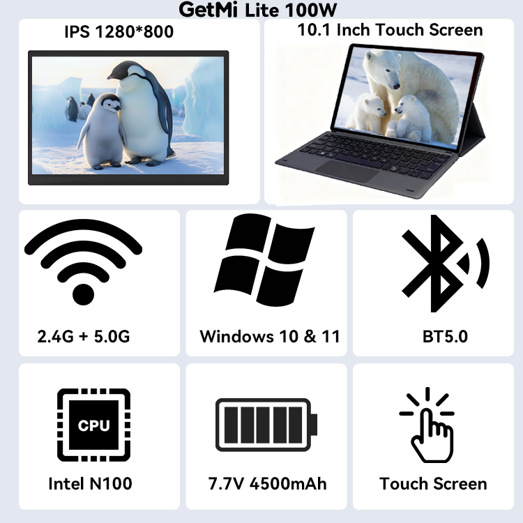 GetMi Lite 100W Laptop 10.1 Inch IPS Touch Screen 2 in 1 Tablet PC With Keyboard for Student Online Classroom Educational