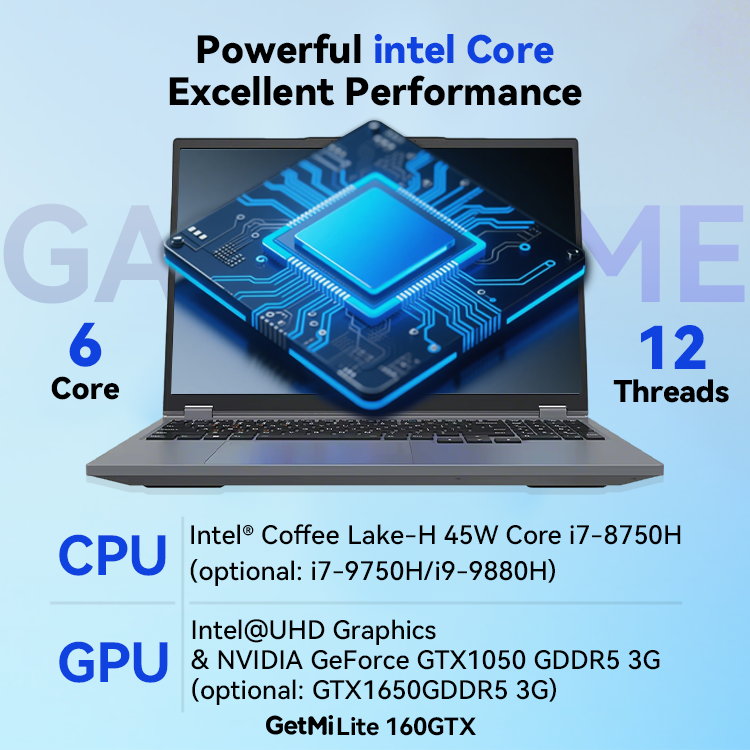 CPU:Intel i7 - 8750H (Optional i7 - 9750H/i9 - 9880H)