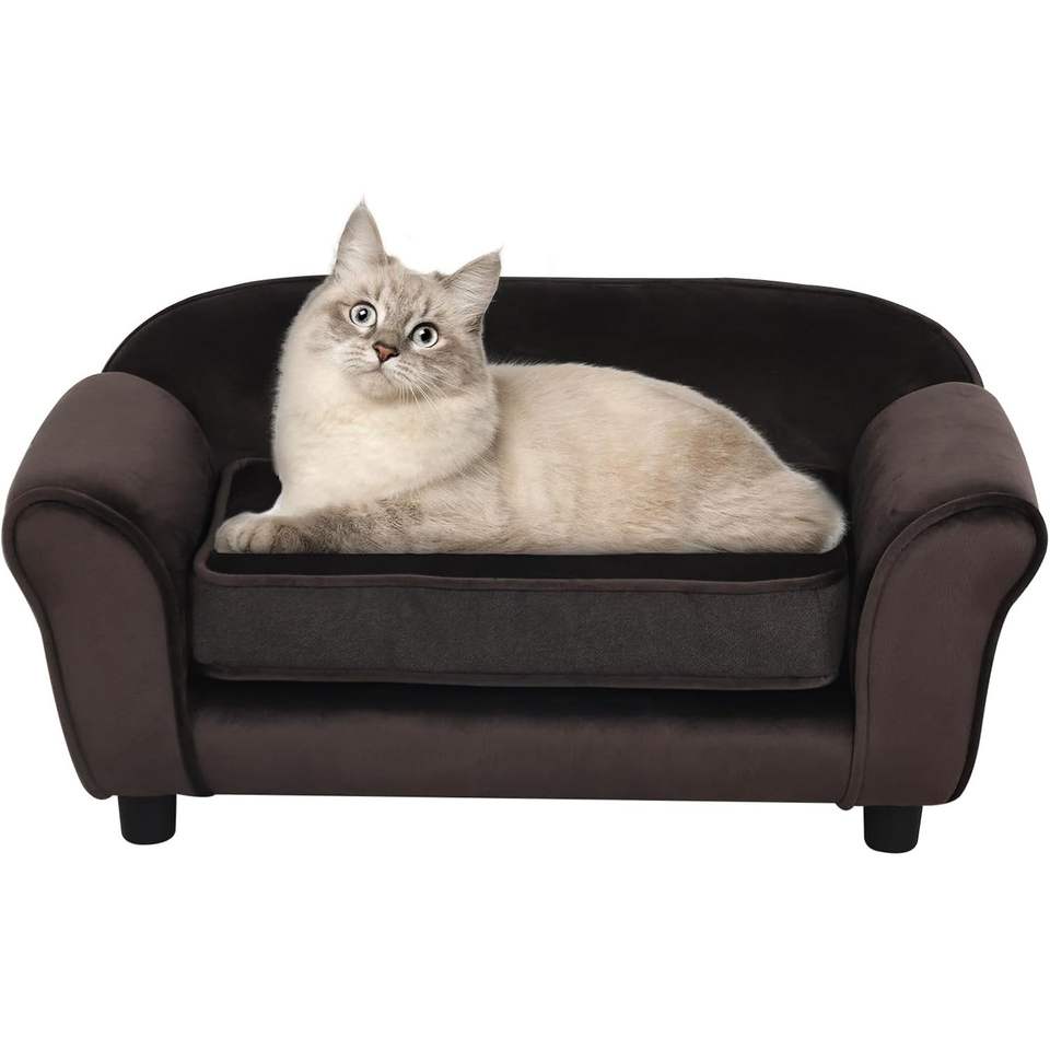 Getifun Brown Velvet Cat Couch Small Dog Sofa Bed with Washable Cushion & Plastic Legs 29 X 16 X 12.7 Inches