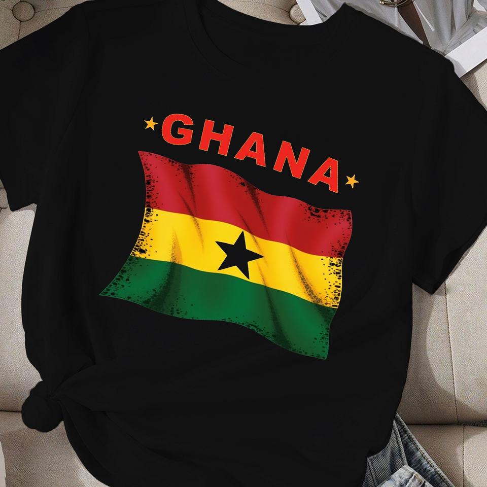 Ghana Flag Stars Women's Casual Print Polyester Knitted Comfortable T-Shirt