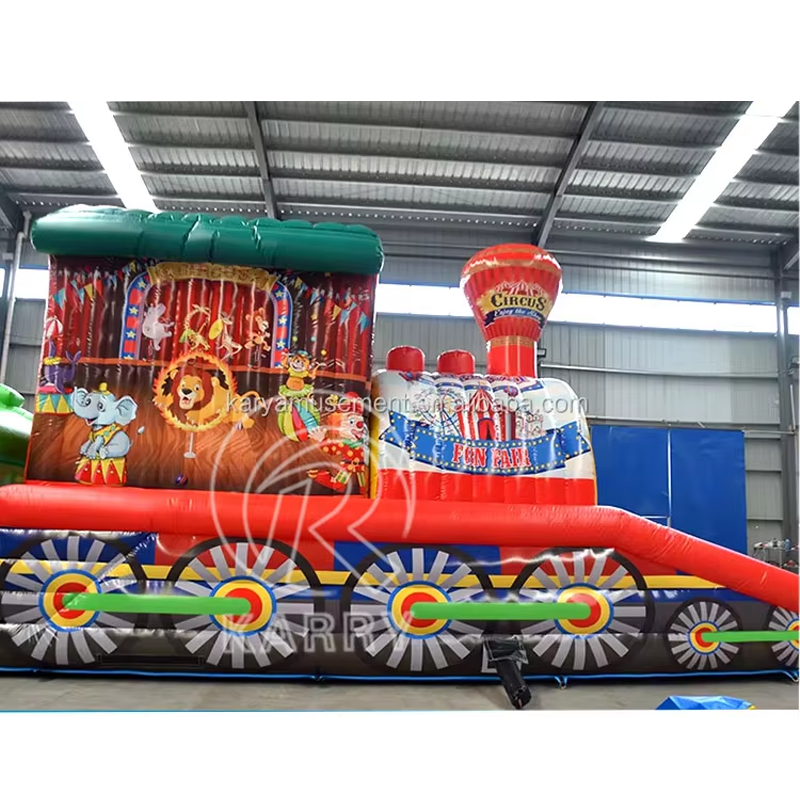 Giant Circus Train Theme Inflatable Jumping Castle Bounce House Combo Obstacle Course Slide Climbing Wall Inflatable Castle