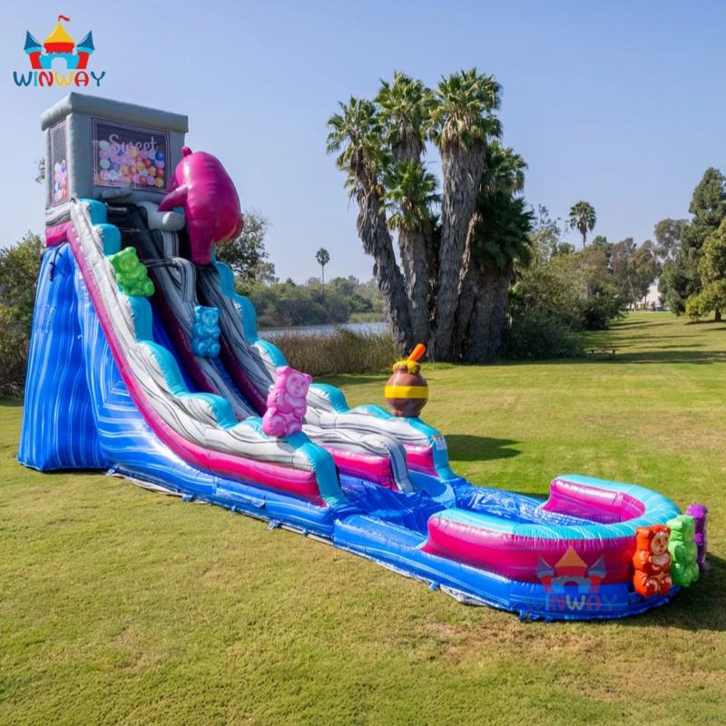 Giant Gummy Bear Commercial PVC Inflatable Slide with Water Pool for Kids Outdoor