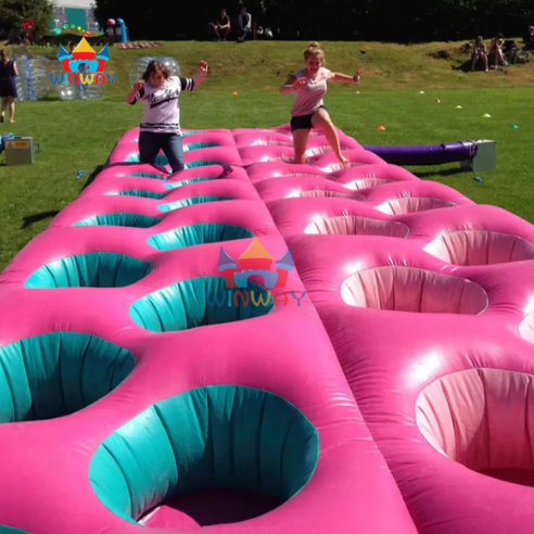 Giant Pink Inflatable Wonder Challenge Tyre Run, Team Building Obstacle Course Game for Outdoor Events