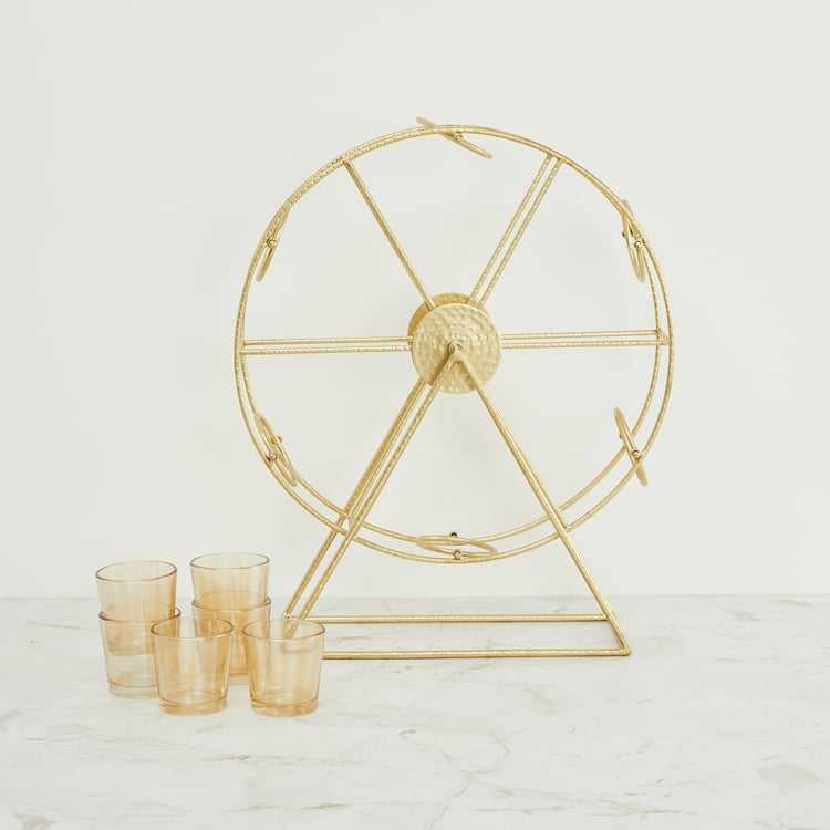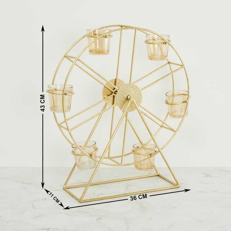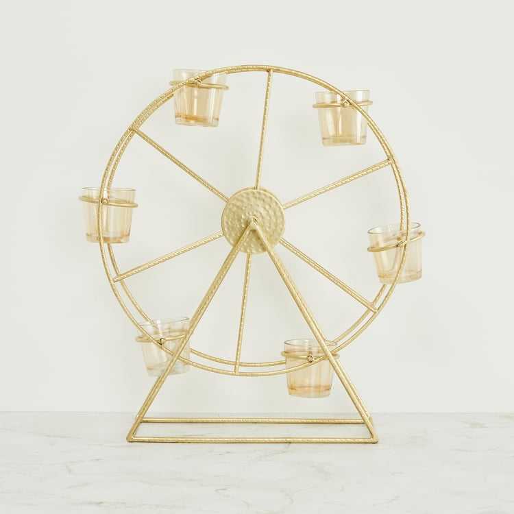 Giant Wheel Shape Small Votive Candle Holder with Wooden Base for Christmas and Home Decoration Gold Color Decorative
