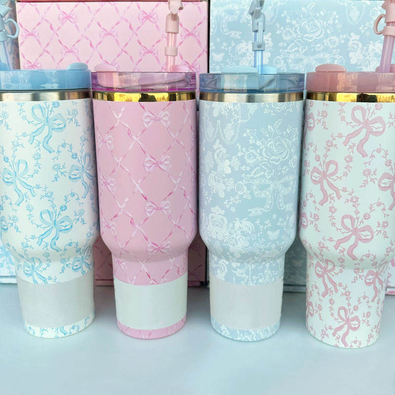 Gift Box Package Laser Engraving Brand logo Flower Print Outdoor Double Wall Insulated Cup Stainless Steel Vacuum Travel Tumbler