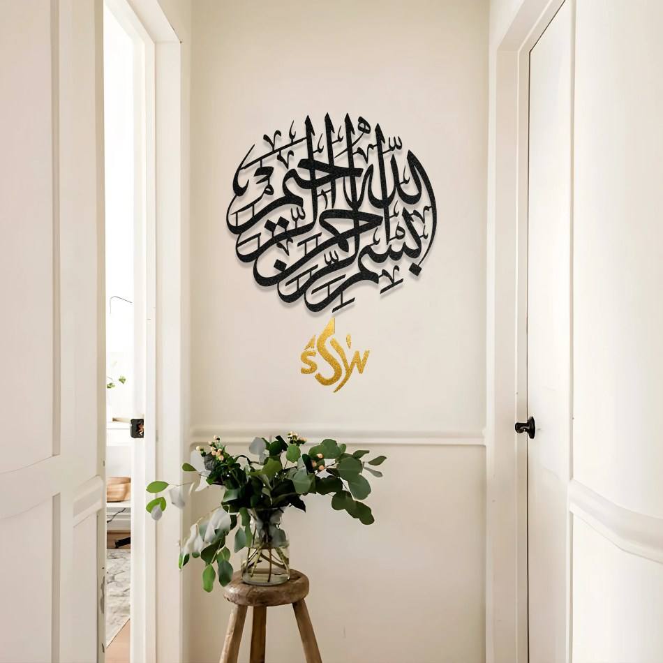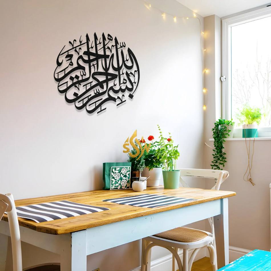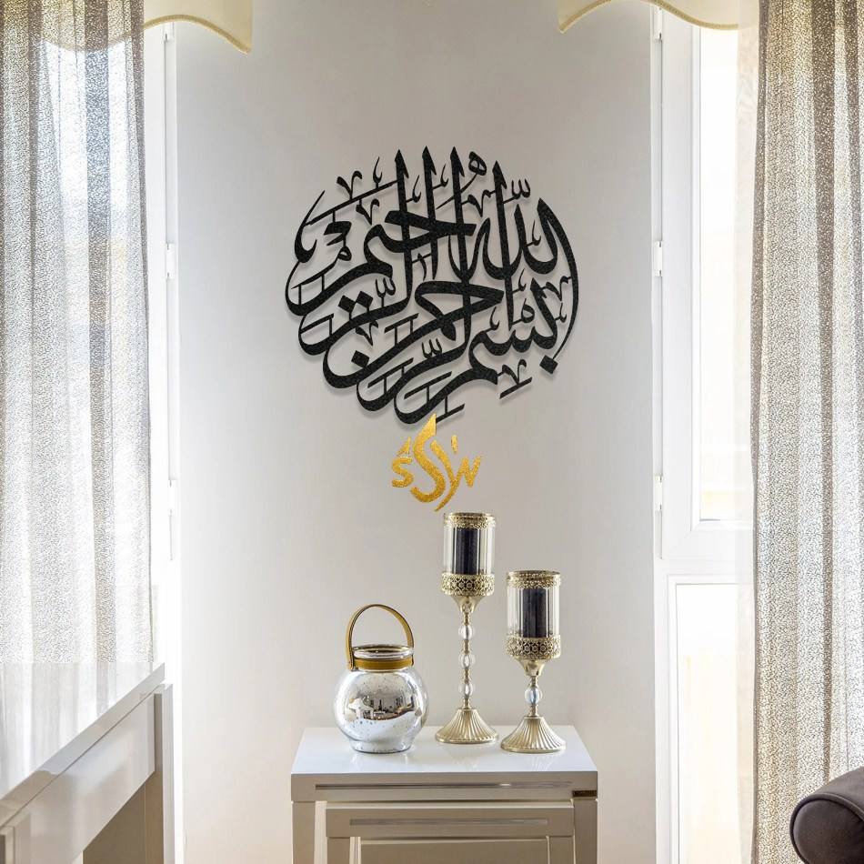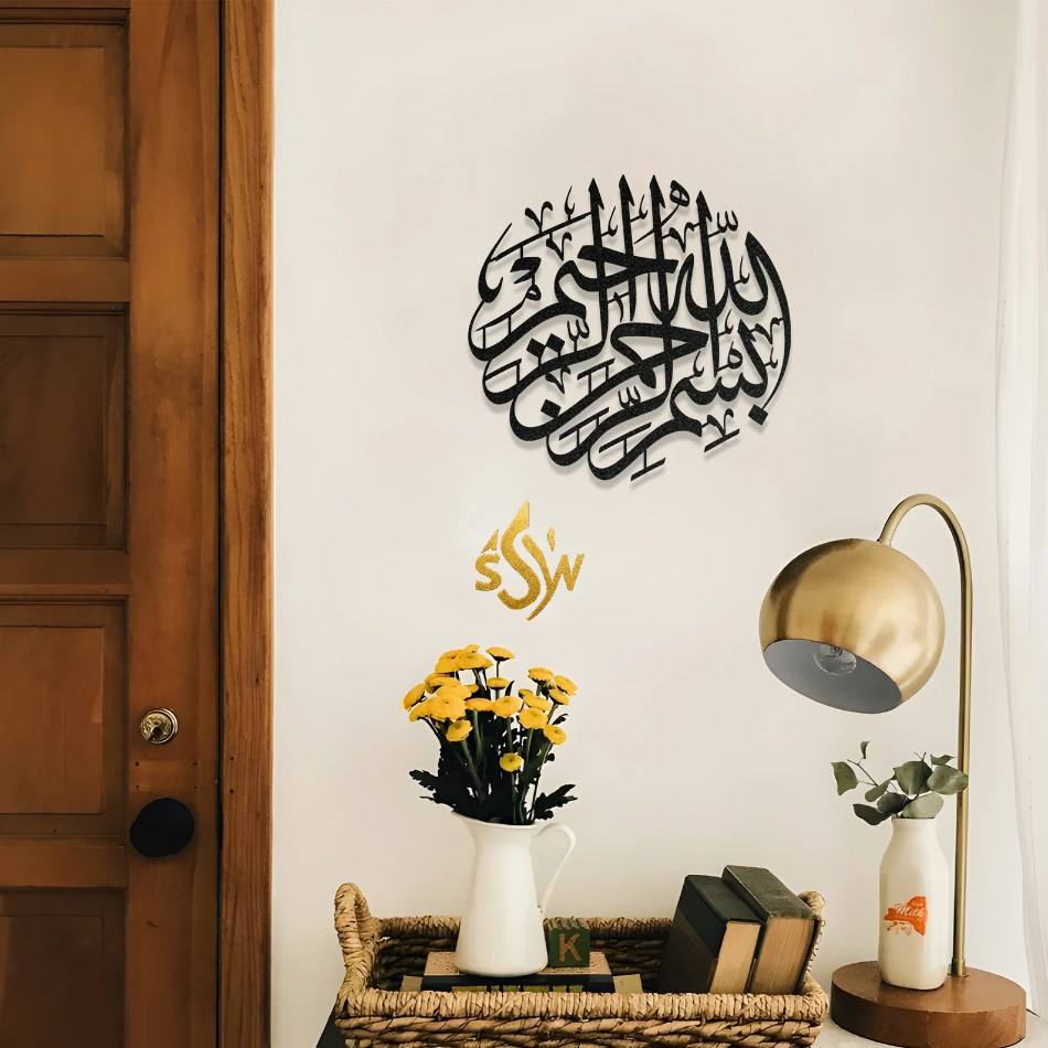 Gift New Islamic Wall Art Round Shape Metal Living Room Decoration Wall Art Trending Designer Calligraphy Work Wall Art Indian