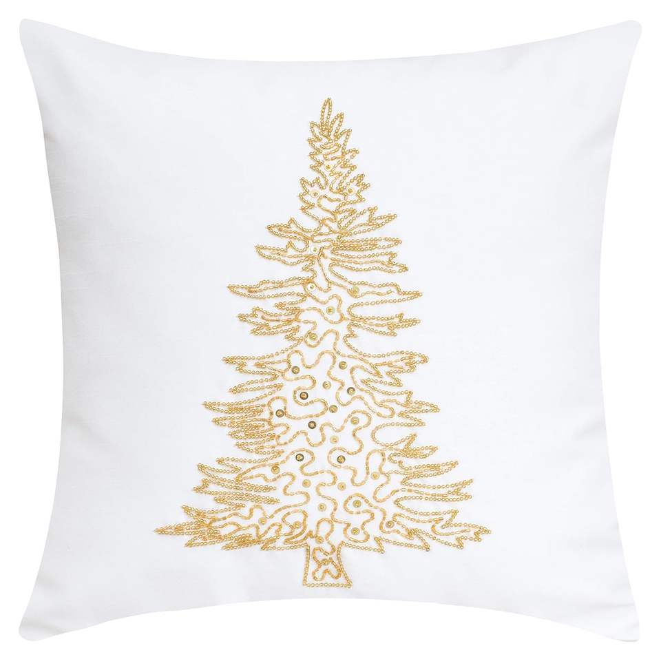Giftable Home Accessories Velvet Beaded Cushion Holiday Throw Pillow with Xmas Tree Design for Christmas Living Room Decor