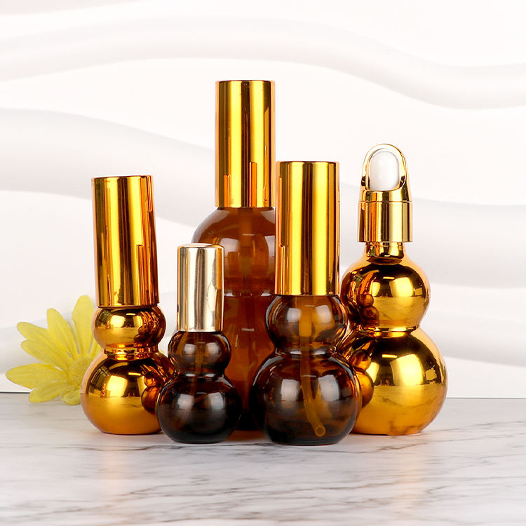 Gilded-Elegance 20ml 30ml Custom Color Glass Gourd Bottle + Metallic Printing for Ceramides Hydrating Essence