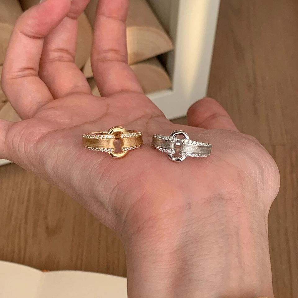 Gilded Years S925 Pure Silver O-Shape Lock Ring Ancient Korean Style Light Luxury Small Female Brushed Ingot Vintager Middle