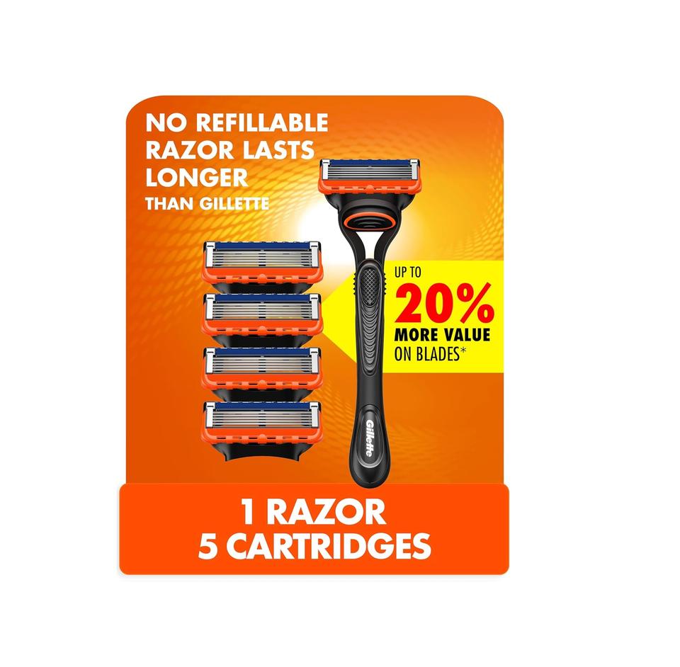 Gillette Fusion5 Rotary Head Disposable Razor for Men 1 Handle 4 Stainless Steel Blade Refills Lubrastrip Close Shave