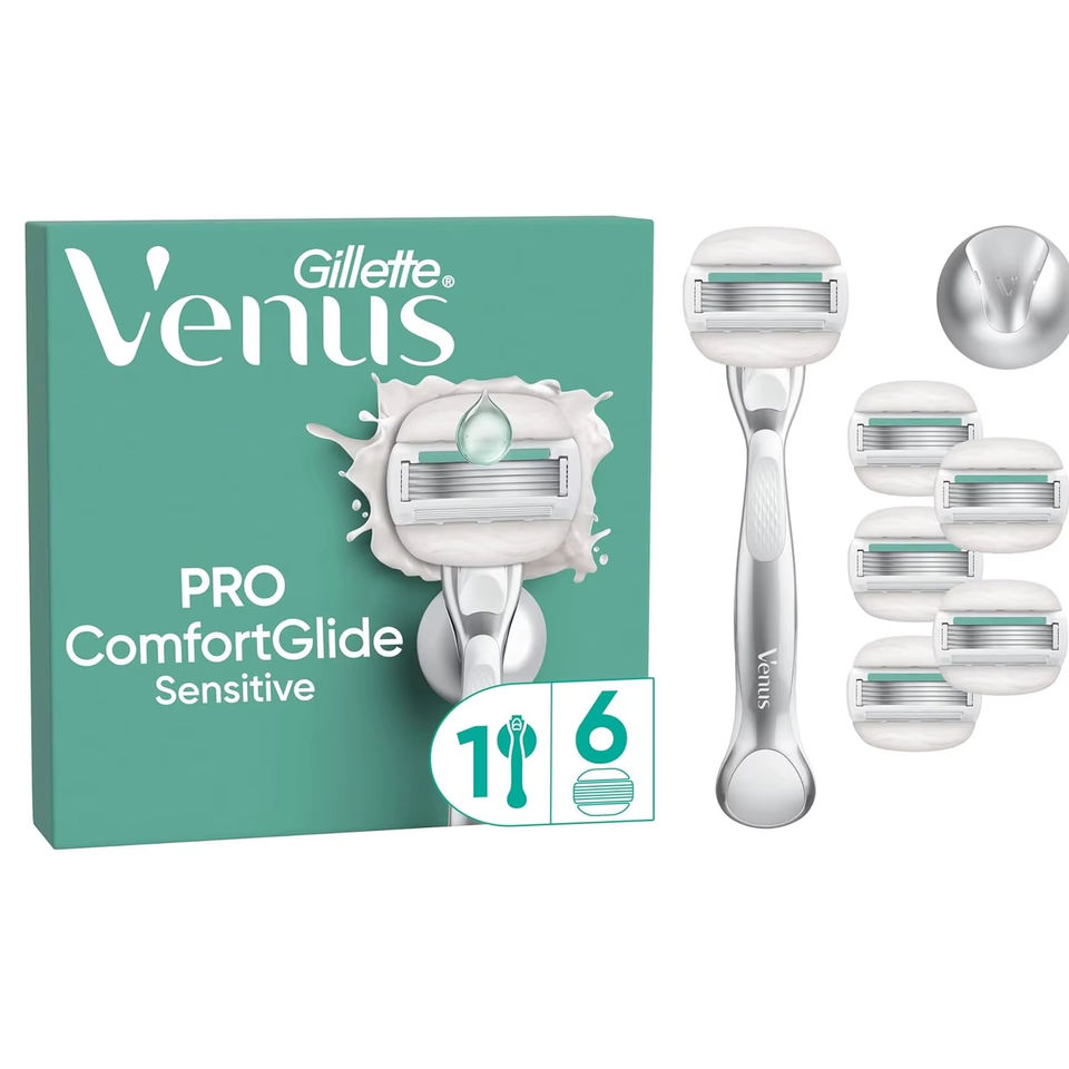 Gillette Venus Pro ComfortGlide Sensitive Women Razor with a Touch of Aloe, 1 Refill Razor Cartridges, Reusable Metal Handle