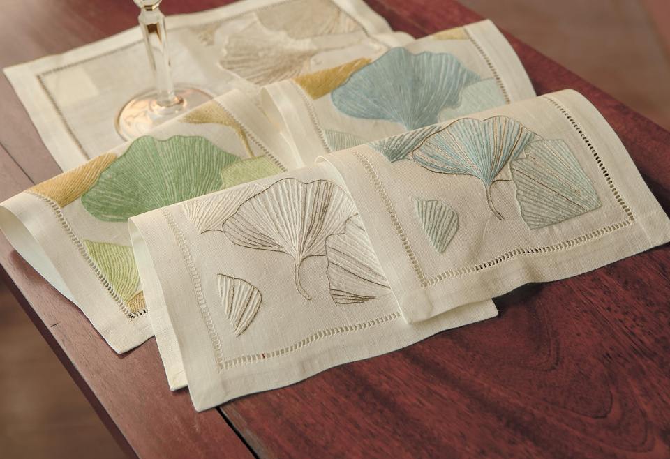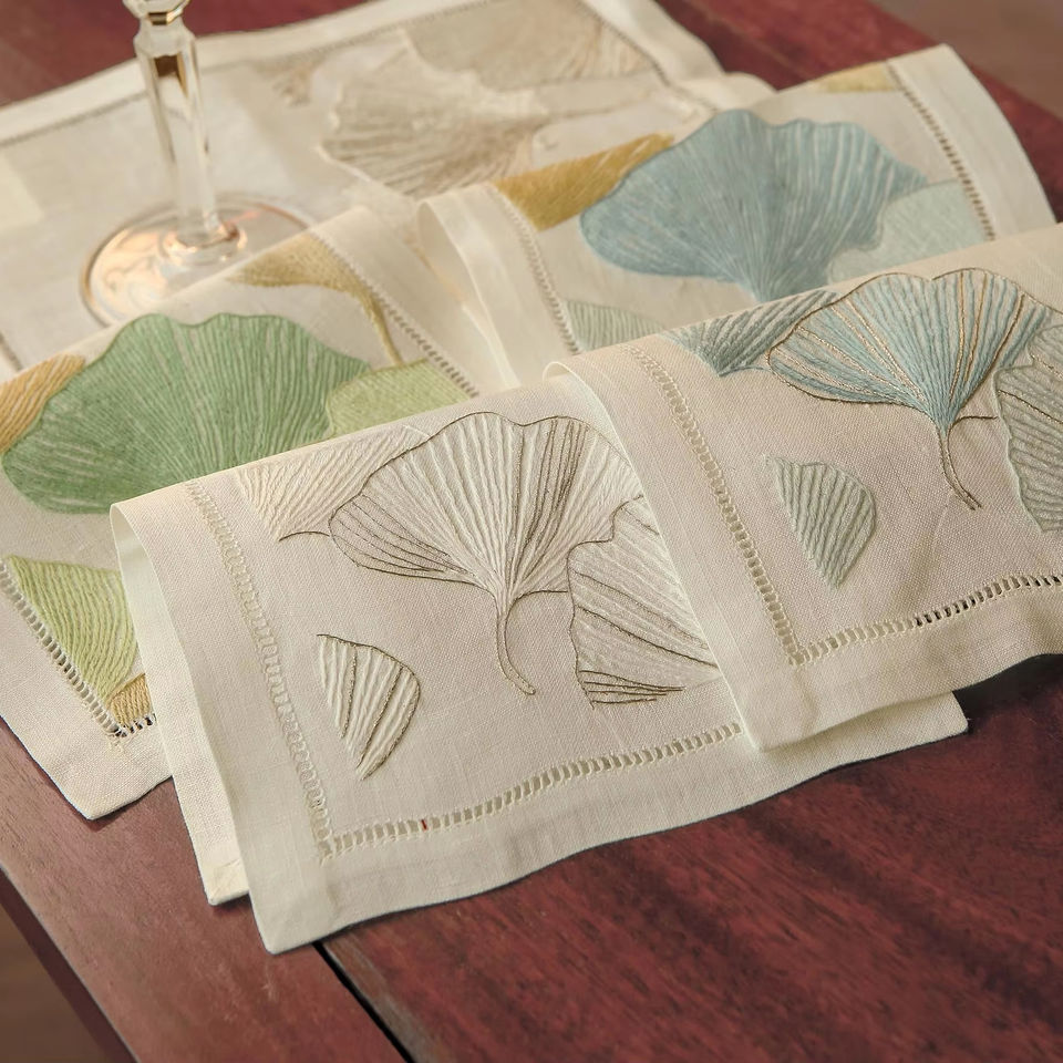 Ginkgo Grace Linen Cocktail Napkins – 100% Natural Linen Reusable Drink Napkins, Elegant Botanical Design for Bar, Party