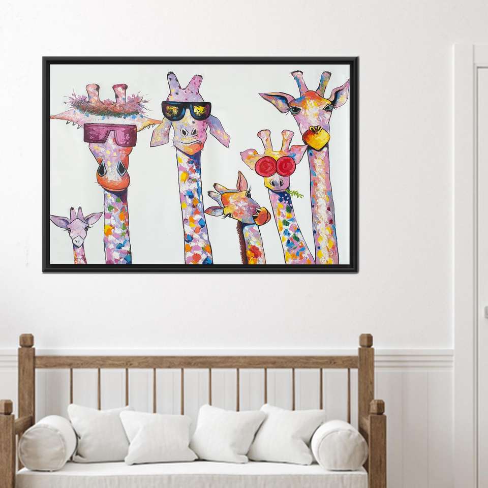 Giraffe Family Printed Canvas - Elegant Animal Wall Art for Home Decor,1P:Black Framed