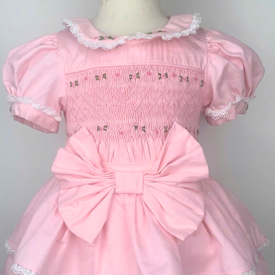 Girl's Clothing Smocked Children Clothing Luxury Kids Clothes for Baby Kid Set Pink Floral Bow Princess OEM ODM Wholesale