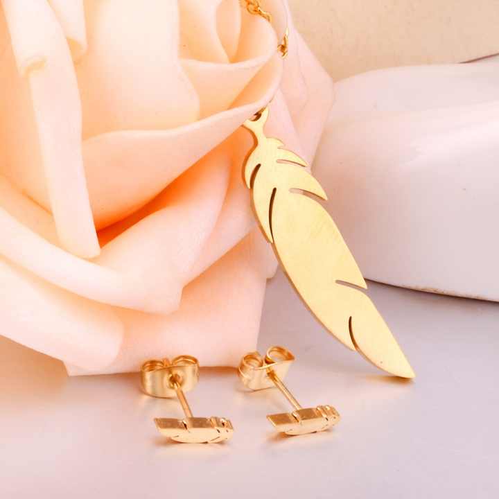 Girls Accessories Custom Stainless Steel Engraved Gold Leaf Jewelry Set
