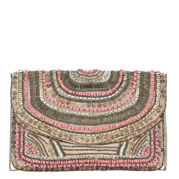 Girls Boho Beaded for Pink Gold Embroidery Handmade Ethnic Crossbody Purse Lightweight Accessory for Weddings Autumn Travel