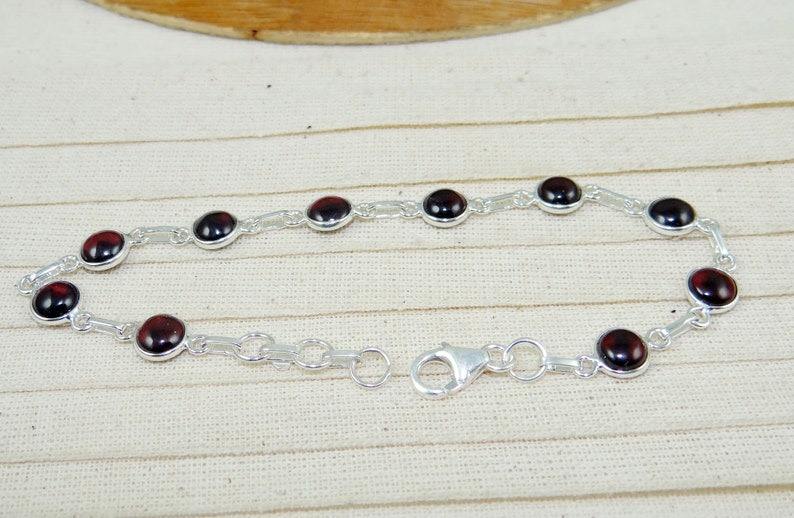 Girls Boho Style Bracelet Solid 925 Sterling Silver Garnet Gemstone Handmade Silver Tennis Bracelet Sterling Silver Jewelry