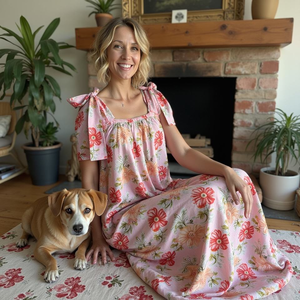 Girls Casual Lightweight Pink Maxi Dress with Square Neck Red Orange Yellow Floral Print Comfortable Summer Fit Bow Tie Strap