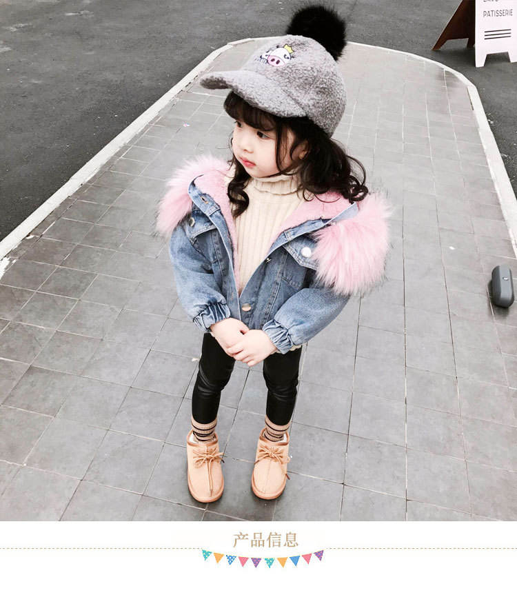 Girls Clothing Baby Coats for Girls Fur Collar Jackets for Winter Autumn Kids Clothes Plus Velvet Thick Denim Children Outerwear