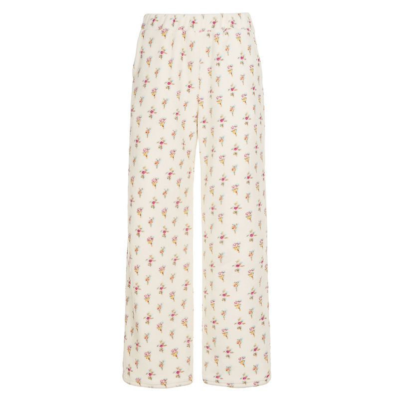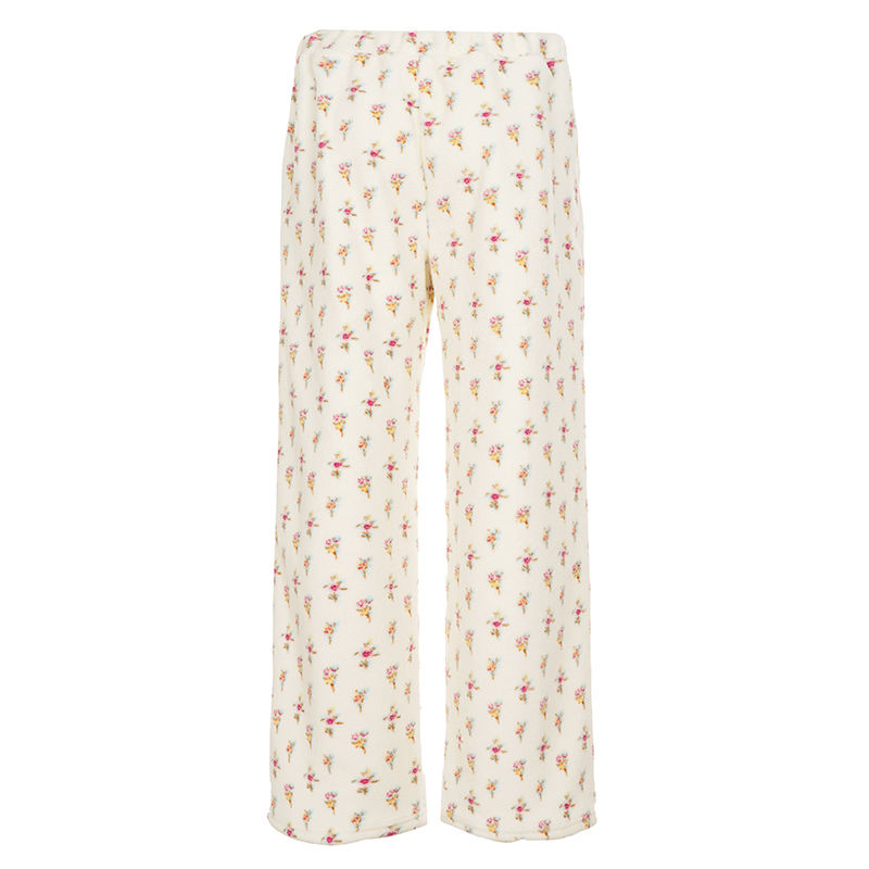 Girls' Colorful Floral Print Plush Pants Winter Cute Cozy Elastic Waist Flat Loose Fit Warm Straight Leg Trousers 2025 New