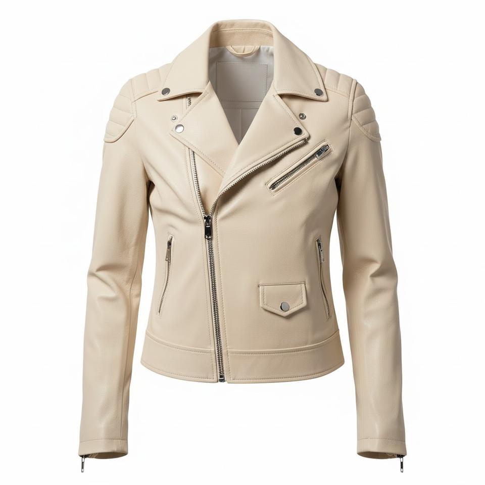 Girls Cream Leather Motorbike Jacket Custom Bulk Wholesale Factory Price Genuine Biker Style Fashion Coat OEM ODM Service Jacket