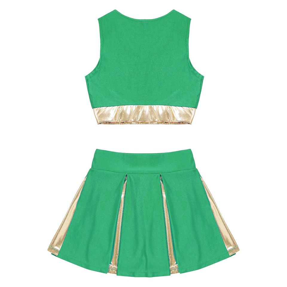 Girls' Customizable Colors Sizes 100% Polyester Elasticity Cheer Uniform Striped Skirt Sleeveless Crop Top Cheerleading Uniform
