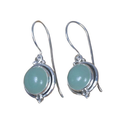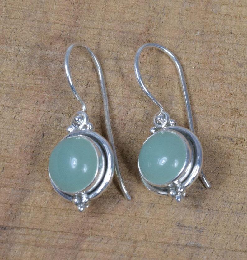 Girls Dangle Earrings Silver Jewellery Aquamarine 925 Solid Sterling Silver Gemstone Earrings Round Shape Earrings for Women