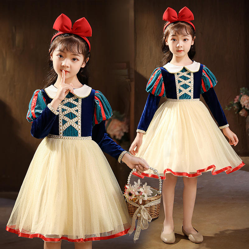 Girls Dress up Princess Costume Role Play Halloween Party Classic Snow White Dresses for Kids