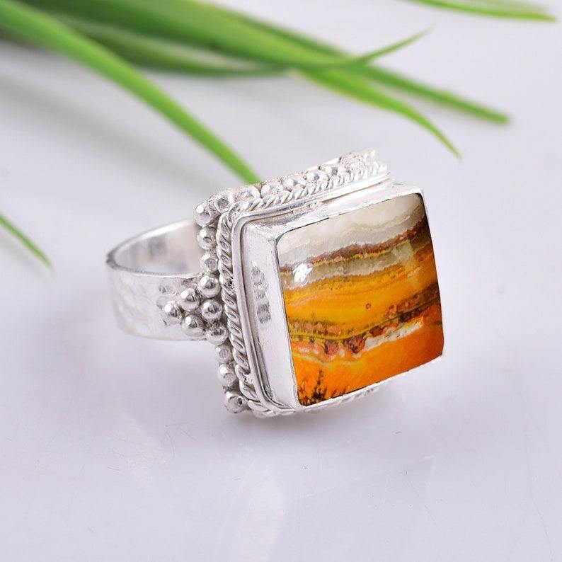 Girls Fashion Ring Handmade Fine Jewelry Ring for Girls and Ladies Natural Bumble Bee Jasper on Solid 925 Sterling Silver Rings