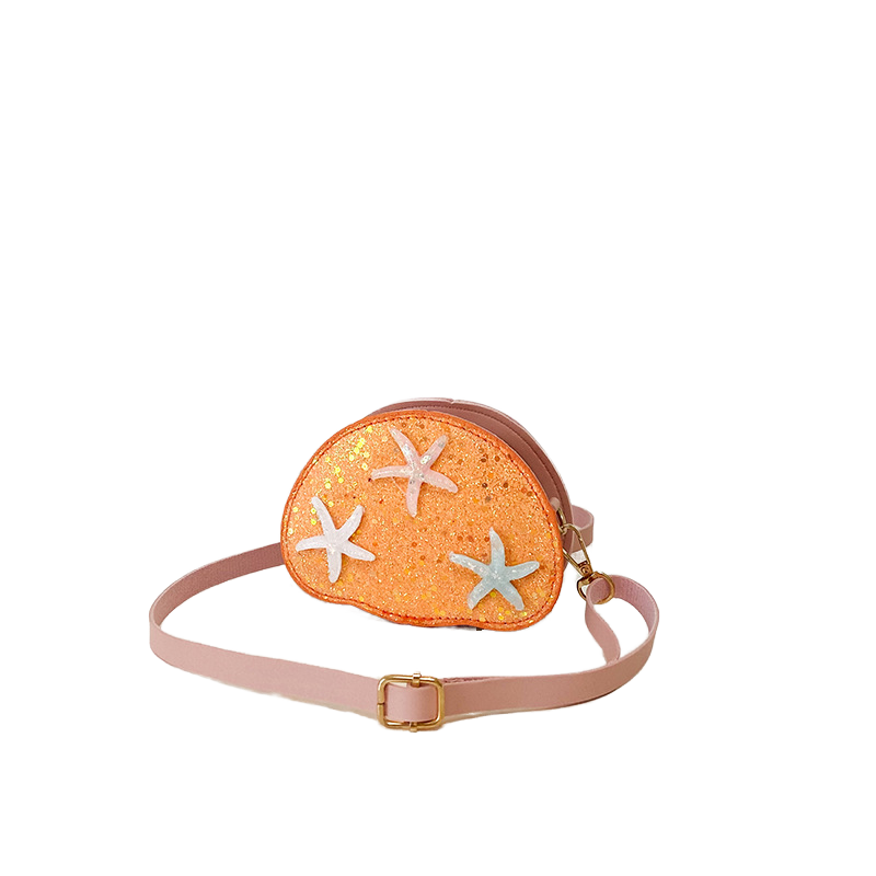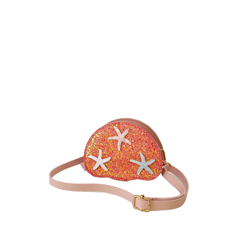 Girls Glitter Sequin Seashell Crossbody Purse, Cute Glittering Starfish Shoulder Bag Coin Purse for Kids Women, Pink, One Size