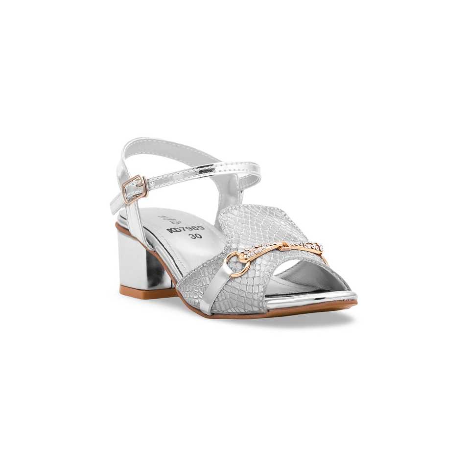 Girls Heeled Sandals Silver Fancy Design KD7986