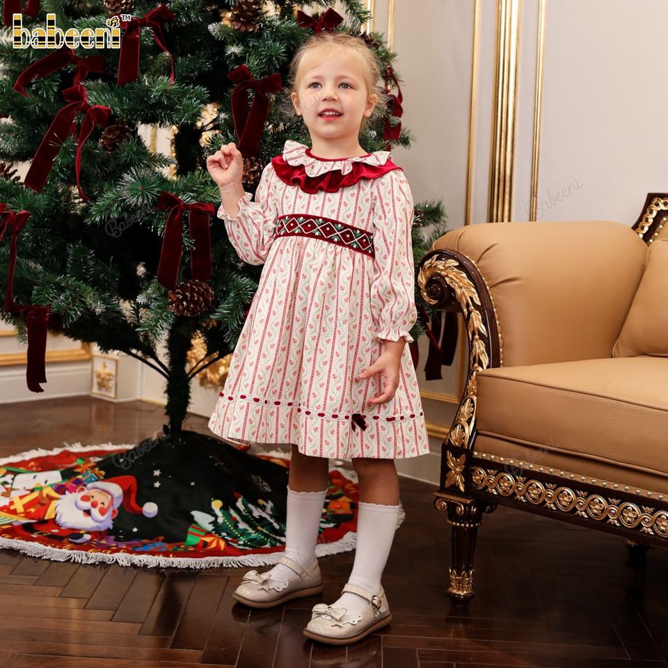 Girls Children's Autumn Casual Eco-Friendly O-Neck Collar Velvet Waistband 100% Cotton A-Line Mini Dress-ODM OEM Wholesale