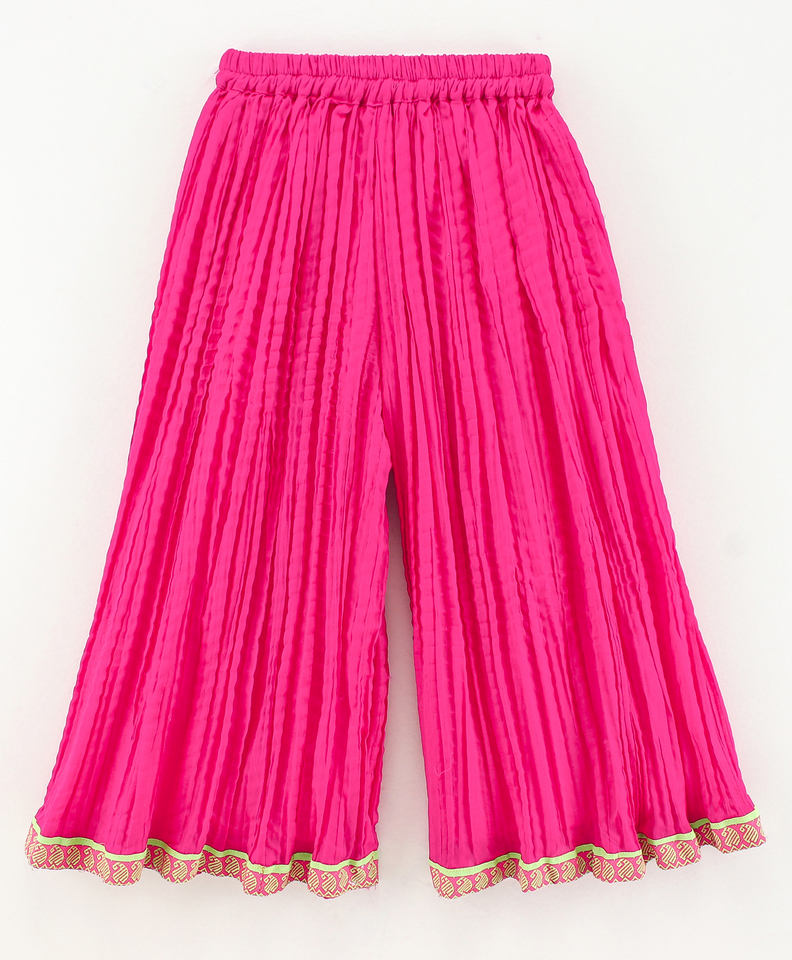 Girls Layered Ruffle Strap Top With Pink Pleated Palazzo Pants Kids Ethnic Festive Traditional Party Wear Outfit Set
