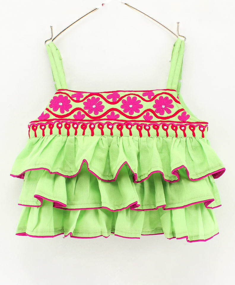 Product name:Twisha Girls embroidered Frill Top with Palazzos - Green & Pink