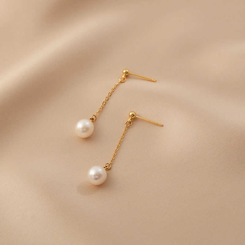 Girls' Long-Temperament Natural Freshwater Pearl Stud Earrings Simple Elegant Design for Everyday Wear