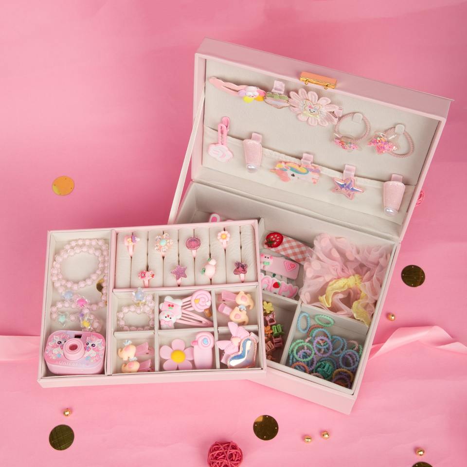 Girls Modern Multi-Layer PU Leather Storage Case for Jewelry Hair Accessories Organizer Box for Hair Clips Bracelets Rings