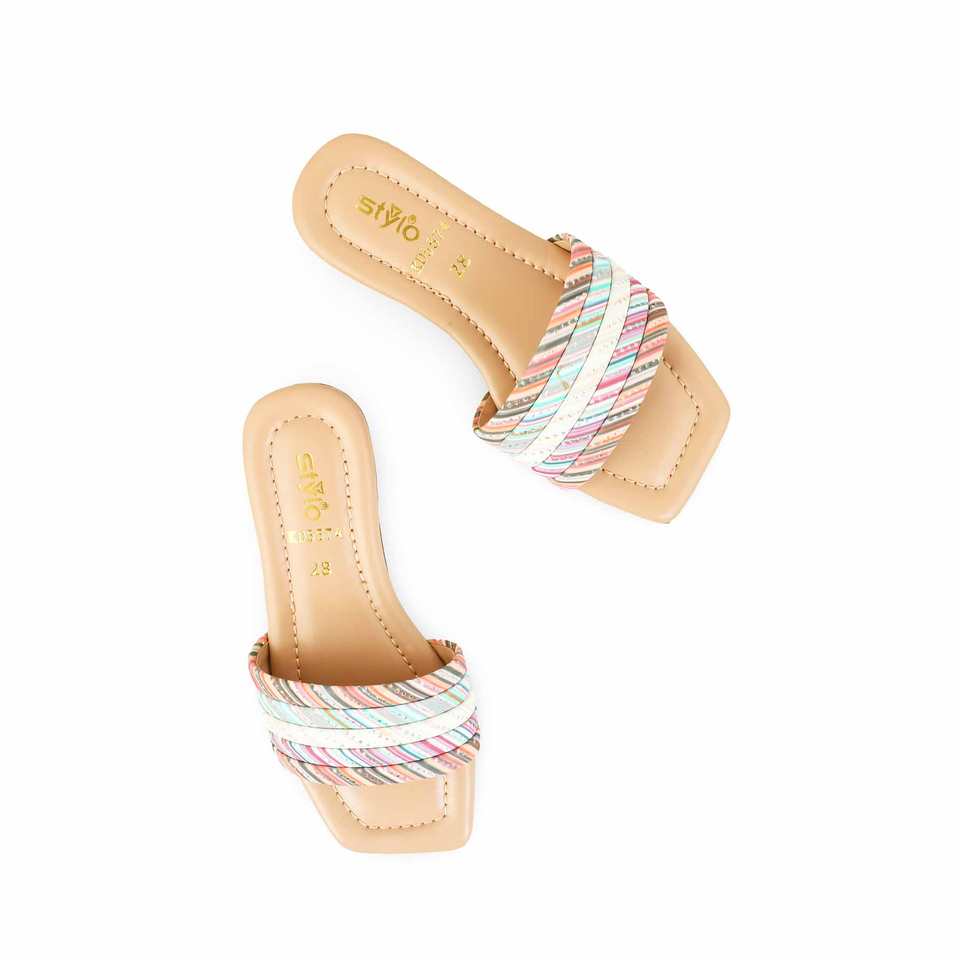 Open Toe Straw Beige Back Taped Handmade Women's Linen Casual Slippers