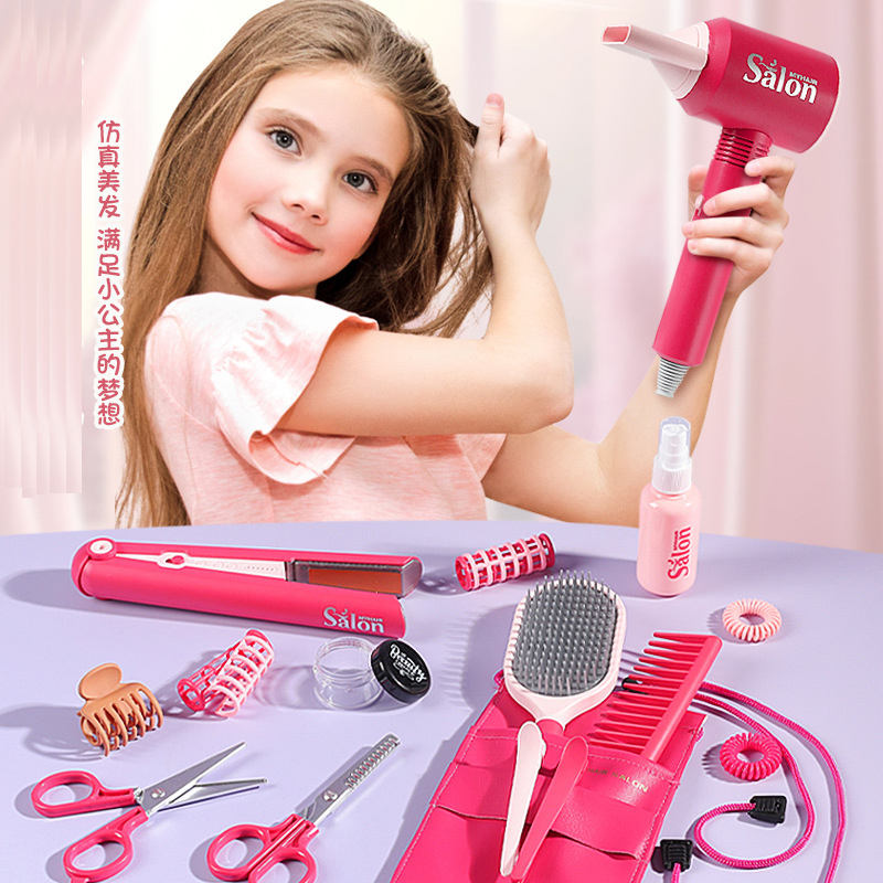 Girls Pretend Play Make up Hair Salon Realistic Hair Styling Toy Kit with Bladeless Hair Dryer Accessories Role Play House Toys